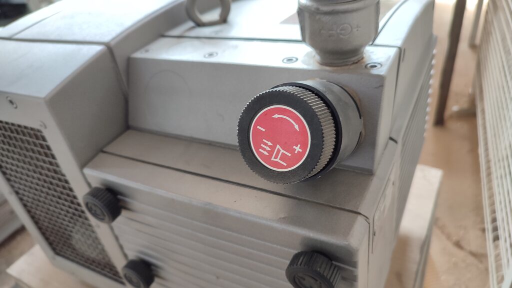 Τέλος, γίνεται ρύθμιση της παροχής αέρα με τον ενσωματωμένο ρυθμιστή στην αντλία, για να επιτευχθεί η απαιτούμενη υποπίεση στο σύστημα και να εξασφαλιστεί το σταθερό κράτημα των τεμαχίων στην κατεργασία.